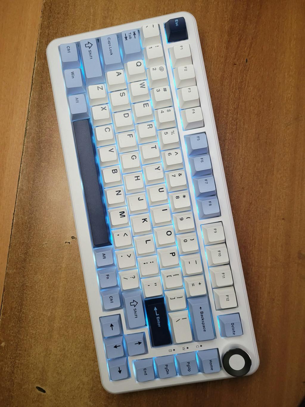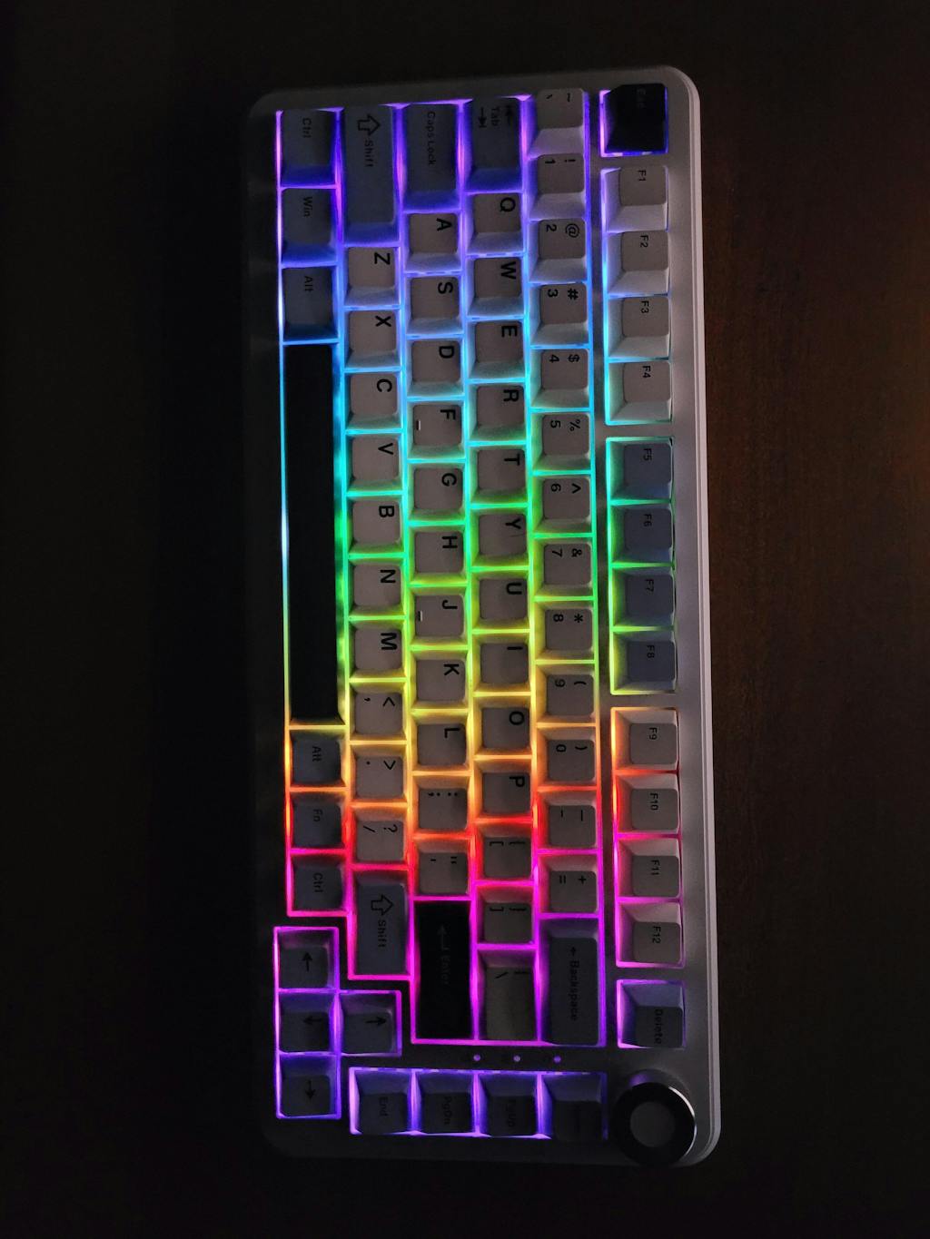 The minimalist hidden magnetic side plate elegantly houses an integrated 2.4GHz receiver, offering both convenient storage and easy access. This design seamlessly blends style with functionality. This keyboard offers three convenient options on the left top for smooth transitions between wireless, BT, and wired connections.
